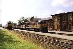 A C30-7Ai pulls a freight train through the railway station in Tapa, Estonia in 2005.