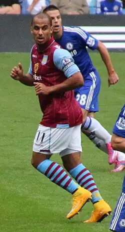 He is a product of Aston Villa's Academy, and made his first-team debut in 2006 following loans to Football League clubs Watford and Sheffield Wednesday. He made 391 total appearances for Aston Villa, including 322 in the Premier League. He scored 87 goals for the club, and was their leading Premier League goalscorer, with 74 across 11 consecutive league seasons, until Ollie Watkins broke his record in May 2025.[4] Formerly a regular with the England under-21s, Agbonlahor made his senior international debut for England in 2008 and earned three caps.