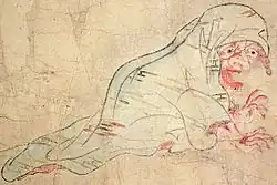 Gagoze (元興寺), also gagoji, guwagoze, gangō, and gangōji no oni (元興寺の鬼, the oni of gangōji) is a yōkai said to have appeared at Gangō-ji in the Nara Prefecture around the Asuka period. It can also be found in the text of the Heian period Nihon Ryōiki (in the story, 雷の憙を得て生ま令めし子の強き力在る縁," On a Boy of Great Strength Who Was Born of the Thunder’s Rejoicing"), the Honchō Monzui, among others.[1] In classical yōkai drawings such as the Gazu Hyakki Yagyō by Toriyama Sekien, it is depicted as an oni with the appearance of a monk.