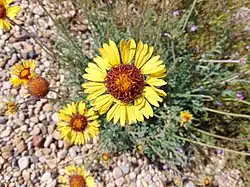 Gaillardia pinnatifida can be found in blackbush scrub, mixed shrub-grasslands, and pinyon–juniper woodland communities.[3]: 78