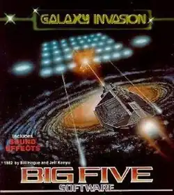 Galaxy Invasion is a clone of Namco's Galaxian arcade game written by Big Five Software founders Bill Hogue and Jeff Konyu for the TRS-80 16K and published in 1980.[1][2] It is the first game from Big Five to include sound and music.[1] Galaxy Invasion was followed by an enhanced version in 1982, Galaxy Invasion Plus, which includes voice.[3]