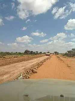 Galdogob and the surrounding region are served by the Galdogob Airport.[11] A major renovation of the facility was launched in 2020 and the first scheduled flight departed in 2022. The airport was inaugurated by Fardowsa Osman Egal, the Minister of Transport and Civil Aviation of Somalia with the event attended by several officers from Puntland.[12]