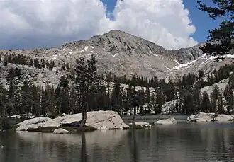 Gale Peak is a 10,690-foot-elevation (3,260-meter) mountain summit located in Madera County, California, United States. It is situated in the Sierra Nevada mountain range, in the southeast corner of Yosemite National Park, on the common boundary which the park shares with the Ansel Adams Wilderness. The mountain rises 1.3 miles (2.1 km) south of Fernandez Pass, 4.5 miles (7.2 km) south of the Clark Range, and 2.2 miles (3.5 km) north-northwest of Madera Peak. Precipitation runoff from this landform drains west into tributaries of the South Fork Merced River, and east into tributaries of the San Joaquin River. Topographic relief is significant as the summit rises 1,400 feet (430 meters) above Upper Chain Lake in 0.38 miles (0.61 km). The peak can be climbed via the class 2 northwest ridge which separates Breeze Lake from the Chain Lakes.[1]