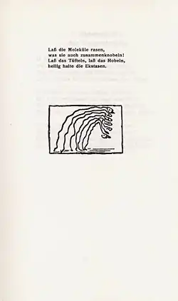 "Fisches Nachtgesang" ("Fish's Night Song") consists only of patterns of macrons and breves printed to suggest fish scales or ripples.[1]