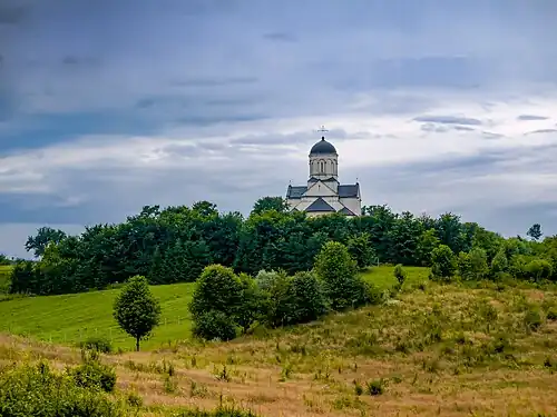Galician school is a style of Kievan Rus' and Romanesque architecture that developed on the territory of Ciscarpathia during the reign of Rostislavichi of Galicia. It was the main style of monumental, especially sacral, architecture in the Principality of Galicia. The characteristic feature of the style is the use of Romanesque masonry technique of cut white stone blocks to create cross-domed churches of Byzantine type. It is believed that the builders of the Galician school built the first stone churches of the colonized Zalesye, which gave rise to the features of architecture of Rostov-Suzdal Land.[1][2]