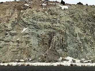 ![]() Gallatin Formation with fault on the south side of the Big Horn Mountains | |
