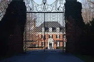 Gallison Hall is a historic home located near Charlottesville in Albemarle County, Virginia, United States. It was designed by the architect Stanhope Johnson in the Georgian Revival style, and built between 1931 and 1933. It consists of a 2½-story, five-bay, brick center section with a steeply pitched hipped roof, flanked by 1+12-story, three-bay, gable-roofed wings connected by hyphens. At each end are a seven-bay brick arcades connected to a 1+12-story two-bay gable-roofed garage on the east and an identical arcade connected to an octagonal gazebo brick on the west. The house is set among English gardens designed by Charles F. Gillette.[3]