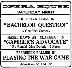 Gambier's Advocate is a lost[1] 1915 American drama silent film directed by James Kirkwood, Sr. and written by Ronald MacDonald. The film stars Hazel Dawn, James Kirkwood, Sr., Fuller Mellish, Dorothy Bernard, Robert Broderick and Maude Odell. The film was released on June 17, 1915, by Paramount Pictures.[2][3]