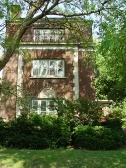 The chapter fell on tough times and nearly lost its housing both during World War II and with the sale of its house to the University of Chicago in 1958. Like many residential institutions during World War II, the Chicago chapter lost many men to the armed forces and was hard-pressed to fill the house with enough members to make ends meet.[17] Supplies like roofing tiles were "unattainable at any price" that the chapter could afford and the pipes also fell into disrepair, dripping "dismally" through the winter of 1943.[18] The house's future seemed "none too bright" to its members and was so uncertain that "all efforts" were "being made to forestall a possible closure."[19]