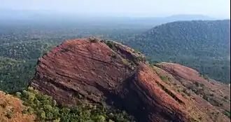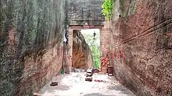 Gandhari khilla is a hill fort located near Bokkalagutta, in Mandamarri Mandal in Mancherial district in the south Indian state of Telangana.[1] It is located on the sand rock hills. It is 270 kilometres (157 mi) north east of the state capital, Hyderabad. The fort was built within a thickly forested area which has a wealth of plant species which includes many medicinal herbs. The fort has not been fully excavated and is still partially covered by forest.[2] Mahankali Jatara (quarry jatara) is conducted every year which attracts more than 10,000 people. Gandhari maisamma jatra is done in the temple on the fort of Gandhari for every 2 years and tribal people from Vindhya region i.e maharastra, Chattisghad on the other bankside joins it. The Mancherial – Chandrapur - Nagpur NH 363 passes close to the fort,[1] which is 3 kilometres away from the Bokkalaguttta village.