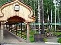 Seven chapels were later constructed at the site, one for each member of the royal family. Each chapel is dedicated to a particular saint or relic. The katholikon is dedicated to the Theotokos Derzhavnaya, an icon particularly revered by the monarchists; it burnt to the ground[5] on 14 September 2010 but has now been fully restored. On the anniversary of the murder, a night-long service is held at the Church of All Saints (Church on the Blood) on the site of the Ipatiev House. At daybreak, a procession walks four hours to Ganina Yama for another ceremony. The former mine pit is covered with lily plants for the ceremony.[6]