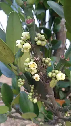 Garcinia subelliptica, commonly known as the happiness or Fukugi tree, is an evergreen tree found in coastal forests of East and Southeast Asia, specifically the Ryukyu Islands of Japan, Taiwan, Philippines, Indonesia, Sri Lanka, and India.[1]