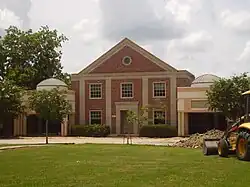 Garden Villas Elementary School was located at the head of the town plan established by Edward Wilkinson. As of 1988 the school had a 1932 two-story entrance block that has neo-Georgian detail and a two-story addition built in 1950, made by Harvin C. Moore and Stayton Nunn. As of 1988 HISD had plans to demolish both original sections.[2] Architect W. Irving Phillips designed a renovation worth $3 million.[12]
