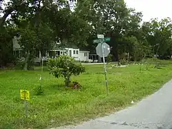 Stephen Fox of Cite said that the original plan of Garden Villas had a "curious mixture of countrified openness and Baroque formality" and that "Garden Villas still seems very much on the edge of Houston, thanks to the presence nearby of the industrial and airports districts."[2] The community included radial cross streets. The civic center of Garden Villas was at the apex of the original city plan, located in proximity to the Sims Bayou. The cross streets focused on the civic center. The developers intended Garden Villas to be a community that would house chicken coops, orchards, and vegetable gardens, so lot sizes were large, with each having .7 acres (0.28 ha) of space.[2] Garden Villas has a lot of pecan trees.[6] Richard Connelly of the Houston Press said in 2010 that the neighborhood has "great old houses from the `30s and `40s, lots of pecan trees, and reasonable prices."[5]