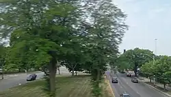 At Elsworth Drive in Washington Park, Garfield Boulevard is redesignated as 55th Street, intersecting Cottage Grove Avenue shortly east of this point. From Cottage Grove Avenue to University Avenue, 55th Street forms the northern boundary of the University of Chicago campus. 55th Street finally intersects South Shore Drive, where the street continues east until a cul-de-sac just west of U.S. Route 41 (Lake Shore Drive).[3]
