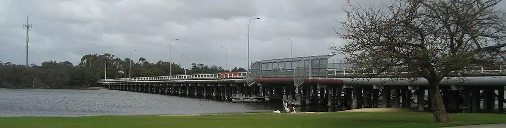 Garratt Road Bridge is the longest timber bridge still in existence in Western Australia. It may have been the longest ever built in the state,[a][4] and the downstream bridge was probably the last wooden bridge to be built in Perth.[b][5]