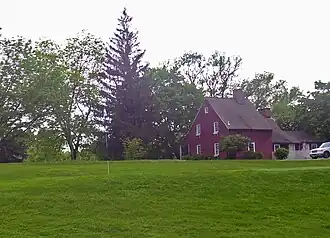 The most noticeable building in the district is the red frame one-and-half-story farmhouse visible from the nearby intersection. It sits on a slight slope to the nearby Hudson River. Its shingle siding was applied later over painted weatherboard. The main block retains more of its original furnishing and layout than the kitchen wing.[1]