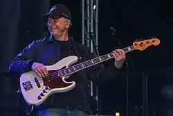 Sinise playing bass guitar in the Lt. Dan Band in 2024