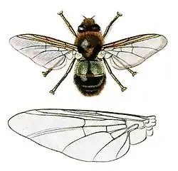 Gasterophilus nasalis (also called throat bot fly or horse nasal bot fly[2]) is a species of the genus Gasterophilus and family Oestridae. This species is found worldwide, but prominently present within the summer months. This species of G. nasalis primarily targets equines, such as horses, donkeys and the plains zebra.[3] However, it's known that it targets cattle as well, along with mild cases of companion animals.[3]