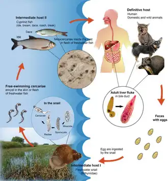 - ^ a b González-Miguel, Javier; Becerro-Recio, David; Siles-Lucas, Mar (2021-01-01). "Insights into Fasciola hepatica Juveniles: Crossing the Fasciolosis Rubicon". Trends in Parasitology. 37 (1): 35–47. doi:10.1016/j.pt.2020.09.007. ISSN 1471-4922. PMID 33067132.