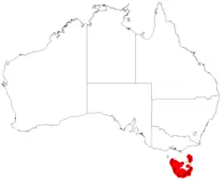 The blue-green tea tree grows in wet heath and is widespread in Tasmania.[4]
