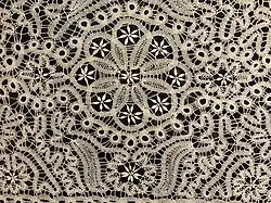 Until the end of the 19th century and even as late as 1950 on Crete, silk was produced at home by women who fed the leaves of the local mulberry trees to silkworms.[26] Along with the making of silk, the women of Gavalochori participated in the making of bobbin lace known as kopaneli, in which lace is made from silk thread on a bolster pillow with bobbins. The art of bobbin lace appeared on Crete between 1906 and 1908 when a nun from Gavalochori, Minodora Athanasaki, learned bobbin lace making when she attended school in Athens and then taught it to the rest of the nuns in her convent of Holy Prodromou in Chania. Because there were many nuns in that convent from Gavalochori, the art spread quickly through the village.[27] The art of bobbin lace continues to be practiced by a few women in Gavalochori, and they occasionally gather in one of Gavalochori's public buildings or squares to work together on their lace projects.[28] Samples of the lace and as well as a pillow and bobbins for making the lace can be seen in the Folklore Museum in Gavalochori.