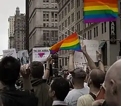 Gay is a term that primarily refers to a homosexual person or the trait of being homosexual. The term's use as a reference to male homosexuality may date as early as the late 19th century, but its use gradually increased in the mid-20th century.[1] In modern English, gay has come to be used as an adjective, and as a noun, referring to the community, practices and cultures associated with homosexuality. In the 1960s, gay became the word favored by homosexual men to describe their sexual orientation.[2] By the end of the 20th century, the word gay was recommended by major LGBT groups and style guides to describe people attracted to members of the same sex,[3][4] although it is more commonly used to refer specifically to men.[5] At about the same time, a new, pejorative use became prevalent in some parts of the world. Among younger speakers, the word has a meaning ranging from derision (e.g., equivalent to rubbish or stupid) to a light-hearted mockery or ridicule (e.g., equivalent to weak, unmanly, or lame). The extent to which these usages still retain connotations of homosexuality has been debated and harshly criticized.[6][7] This page examines gay characters in fictional works as a whole, focusing on characters and tropes in cinema and fantasy.