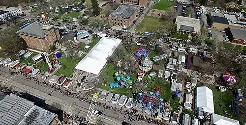 The Geauga County Maple Festival is a fair celebrating the production of maple syrup. It is the oldest maple festival in the United States, and one of the largest.[1] The fair takes place in Chardon, Ohio in the Chardon Courthouse Square District. Chardon is located in northeast Ohio, about 35 miles east of Cleveland.[2] The festival was founded in 1926 in an attempt to market Ohio syrup in competition with Vermont syrup.[3]