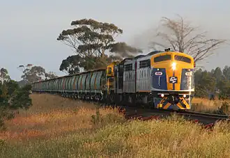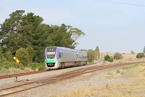 The Geelong–Ballarat railway line is a broad-gauge railway in western Victoria, Australia between the cities of Geelong and Ballarat.[1] Towns along the route include Bannockburn, Lethbridge, Meredith, Elaine and Lal Lal. Major traffic includes general freight from the Mildura line, and grain.
