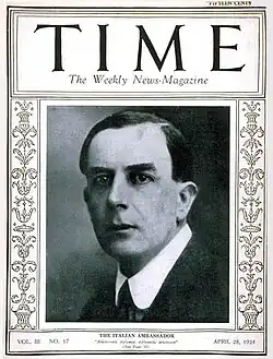 - ^ "War Hero is Named Italy's Envoy Here". The New York Times. November 9, 1922.