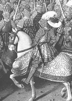 A gendarme was a heavy cavalryman of noble birth, primarily serving in the French army from the Late Middle Ages to the early modern period. Heirs to the knights of French medieval feudal armies, French gendarmes enjoyed like their forefathers a great reputation and were regarded as the finest European heavy cavalry force[1] until the decline of chivalric ideals largely due to the ever-evolving developments in gunpowder technology. They provided the King of France with a potent regular force of armored lancers which, when properly employed, dominated late medieval and early modern battlefields. Their symbolic demise is generally considered to be the Battle of Pavia, which saw the gendarmes suffer a disastrous defeat and inversely confirmed the rise of the Spanish Tercios as the new dominant military force, leading to the preeminence of the House of Habsburg in 16th century Europe.