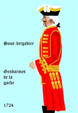 Cavalry called gendarmes continued to serve in French armies for centuries to follow, often with prominence (such as in the wars of Louis XIV), but with less distinctive features than during the sixteenth century. The Royal Guard, known as the Maison militaire du roi de France, had two units of gendarmes: the Gendarmes de la garde (Guard Gendarmes), created in 1609 and the Gendarmes de France or Gendarmes d'Ordonnance, units of regular cavalry continuing the traditions of sixteenth-century Gendarmes.