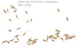 Gentiana triflora (三花龙胆 san hua long dan in Chinese, called clustered gentian in English) is a tall, flowering perennial plant in the genus Gentiana native to higher-elevation (600–1000 m) meadows and forests of China (Hebei, Heilongjiang, Jilin, Liaoning, Nei Mongol), Mongolia, Eastern Russia, Korea and Japan.[1]