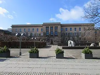 Gentofte Town Hall (Danish: Gentofte Rådhus) is the administrative centre of Gentofte Municipality in the northern suburbs of Copenhagen, Denmark. The main building is from 1939 and is situated on Bernstorffsvej. Gentofte Fire Station is situated next to the town hall.