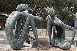 Shedley modelled the figures on the Elizabeth fountain at Windsor Green and the council chambers. He designed street floats for the Adelaide Festival of Arts in 1960 and 1962. He created the massive bas relief fountain sculpture Fire and Earth, a feature of the pond at Windsor Green, Elizabeth.[5] He created the sculpture The Rainmakers, the first major public artwork in South Australia to depict traditional Aboriginals, sponsored by Eugen Lohmann of Remscheid-Lennep, West Germany, and unveiled at Christies Beach on 21 May 1965.[6] While on overseas trips he purchased various works for the Art Gallery of South Australia.[3]