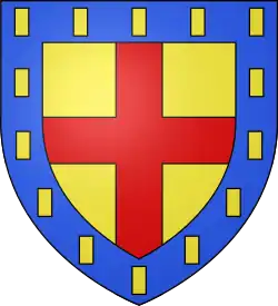 ![]() Arms of Geoffrey de Valognes.Or, a cross Gules within a border Azure billette of the first. | |