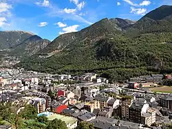 The Pyrenees and Catalonia have frequent and sometimes destructive earthquakes — the largest in recorded history being the Catalan earthquake of 1428 with an estimated magnitude of IX on the MSK scale, equivalent to 6.0–6.5 on the Richter magnitude scale.[19][20] However, earthquakes whose epicentres are inside Andorra tend to be smaller than magnitude 2.[20][21] An earthquake of magnitude 4.2 on 5 October 1999 in nearby Bagnères-de-Luchon (France) was widely felt in Andorra, causing public alarm.[22] The Andorran Government has studied the possibility of a damaging earthquake in Andorra.[3]