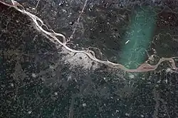 The city is located on a smoothly undulated plain typical of the Pampas, between 22.5 and 24.6 metres above mean sea level; the original settlement rests on the ravine on the right-hand shore of the Paraná, opposite a group of islands of the Paraná Delta which are partly in the jurisdiction of the province of Entre Ríos. The nearest city across the river's flood plain (60 km) is Victoria, Entre Ríos, linked to Rosario by the Rosario-Victoria Bridge.