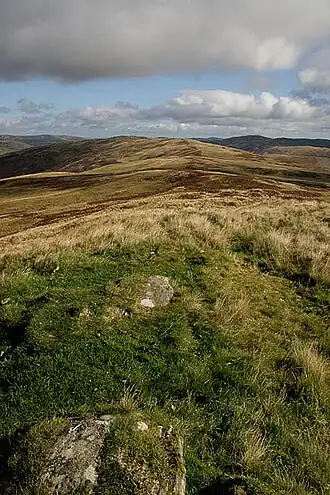 At the beginning of the period, most farming was based on the Lowland fermtoun or Highland baile, settlements of a handful of families that jointly farmed an area notionally suitable for two or three plough teams, allocated in run rigs, of "runs" (furrows) and "rigs" (ridges), to tenant farmers. They usually ran downhill so that they included both wet and dry land, helping to offset the problems of extreme weather conditions.[9] In this era, a system of land ownership based on large estates emerged as the dominant form as Scottish society was largely divided between a few large estate holders and a large number of workers. This had a major impact on the landscape as feudal systems of ownership were abandoned and land holdings reorganised. This process also facilitated the Scottish Agricultural Revolution that further changed the Scottish landscape from the first half of the eighteenth century.[10] This was the beginning of a process that would create a landscape of rectangular fields, carefully located farm complexes with interconnecting roads.[11]
