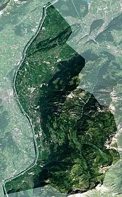 The geology of Liechtenstein formed at the intersection of the Eastern and Western Alps and the country occupies a wider than average river valley on the Rhine River, running north–south. A spur of the Rätikon Mountains flanks the river to the east, while Schellenberg hill is a defining topographic high in the north.