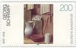 In 1995 Deutsche Bundespost honored Schrimpf with the issue of special stamp featuring his 1923 painting Still Life With Cat. The original painting is held by the Bayerische Staatsgemäldesammlungen, at the Staatsgalerie Moderne Kunst.[8][9]