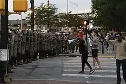 By June 3 thousands of National Guard troops from ten states, as well as law enforcement personnel from a dozen federal agencies, were ordered to the city and deployed on the streets.[40] On June 7, U.S. Senator Mitt Romney (R-UT) joined the protests.[41][42]