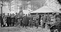 The Army of the Potomac was stationed along the north bank of the Rapidan River and Meade made his headquarters in Culpeper, Virginia.[88] In the Bristoe Campaign, Lee attempted to flank the Army of the Potomac and force Meade to move north of the Rappahannock River.[89] The Union forces had deciphered the Confederate semaphore code. This along with spies and scouts gave Meade advance notice of Lee's movements.[90] As Lee's troops moved north to the west of the Army of the Potomac, Meade abandoned his headquarters at Culpeper and gave orders for his troops to move north to intercept Lee.[91] Meade successfully outmaneuvered Lee in the campaign and gained a small victory. Lee reported that his plans failed due to the quickness of Meade's redeployment of resources.[92] However, Meade's inability to stop Lee from approaching the outskirts of Washington prompted Lincoln to look for another commander of the Army of the Potomac.[93]