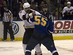 George James Parros (born December 29, 1979) is an American former professional ice hockey player who played nine seasons in the National Hockey League (NHL), who currently serves as the head of the NHL's Department of Player Safety, with the title of senior vice president of player safety. In this role Parros is tasked with determining the suspensions or fines handed out for various on-ice incidents in the NHL. His primary role on the ice was that of an enforcer.[1] Parros was part of the 2007 Stanley Cup winning Anaheim Ducks.