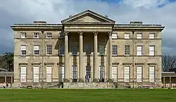His first known architectural work was a town house for John Murray, 3rd Duke of Atholl, which was completed in 1770.[2][4] From this date, Steuart was actively practising as an architect in London, first in Berners Street and then in Harley Street. His work exhibited a "markedly neo-classical taste", with a fondness for tall, thin columns, narrow windows, and "a uniform severity of wall surface" which "verges on bleakness".[2][5] This style can be seen in one of the few surviving examples of his work, Attingham Hall in Shropshire, built 1783–85.[5] In another of his surviving buildings, St. Chad's Church in Shrewsbury, he departed from convention with a circular design and an unusual three-tiered steeple.[2]