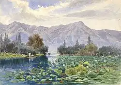 Strahan was born in Ashurst, Surrey to William Strahan. After studying at Eton he joined the Addiscombe college in 1857. At Addiscombe George showed abilities in mathematics and drawing. Among his brothers, William joined the army, Aubrey joined the Geological Survey in Britain, Henry became a mayor of Hythe and another brother Charles followed William into India in the Bengal Engineers. George went to India in 1860 to join the Bengal Sappers and Miners, Roorkee. He then served in surveying for the Ganges Canal and in 1862 he moved to the Survey of India. He worked in Central India initially followed by work in Rajasthan (Rajputana) in 1864 and then surveyed the Himalayas from 1866. From 1875 he worked with Mysore Survey. In 1881 he was moved to replace General W.M. Campbell in the geodetic surveys in the Nicobar Islands and in 1888 he became Superintendent of the Great Trigonometrical Survey. Strahan was involved in producing relief maps and because colour printing had not yet been introduced, he found photozincography unfit for his purpose. He retired in 1894 as Deputy Surveyor-General. He was a Fellow of the Royal Astronomical Society from 1869 and contributed notes on the comet of 1882, a meteor shower in 1885 and observed the eclipse of 22 January 1898 in Norway. Strahan designed sundials, one of which was placed in the Dehra Dun Survey Office. Strahan claimed that as a boy he had been influenced into landscape painting by a gift of John Ruskin's Modern Painters from his mother when he was just fifteen. He claimed that the book "taught me to see nature; all I know of nature and art I have learnt from it." He entered his paintings into the annual exhibitions in Shimla and won the Viceroy's prize three times. After retirement he lived for sometime in Dehra Dun but would travel to Kashmir in summer for climbs. He was also a violocellist and was a member of the Philharmonic Society of Mussoorie.[1] He died at Hampstead.[2]