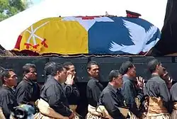Following the official announcement of the death and giving the proclamation of the new king, now Tupou VI, the royal cabinet set up a committee for the organization of the state funeral. Lord Vaea was appointed the chairman of the committee. George Tupou V's body arrived on 26 March 2012, then lay in state at the Royal Palace in Nukuʻalofa for a day.[41] The funeral, originally announced for 28 March 2012, was moved a day forward to 27 March on request of the new king. The decision led to criticism from members of the Tongan diaspora who were unable to travel to Tonga in time for the funeral.[41][42]