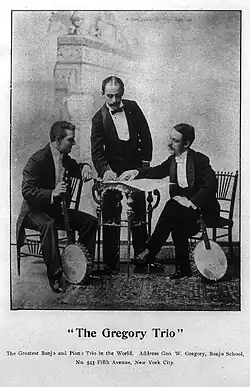 George Washington Gregory (February 15, 1867 – May 2, 1902[1][2]) was a banjo player, playing in the classic banjo style.[3] A composer, he arranged classical music for the 5-string banjo.[3] He taught the banjo as a music teacher and wrote a musical method, Practical Fingering for the Banjo, originally published in serial.[4] For about two years he was part of the Gregory Trio, consisting of himself, W. B. Farmer and Charles Van Baar.[5]