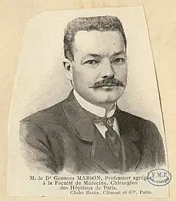 His name is associated with "Marion's disease", described as a congenital obstruction of the posterior urethra.[3] He made contributions involving suprapubic prostatectomy,[4] and is credited for making modifications to Joaquín Albarrán's procedure of nephropexy ("nephropexy ad modum Albarran Marion").[5][6]