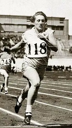 ![]() Georgette Gagneaux winning 100 m preliminaries at the 1928 Olympics | |